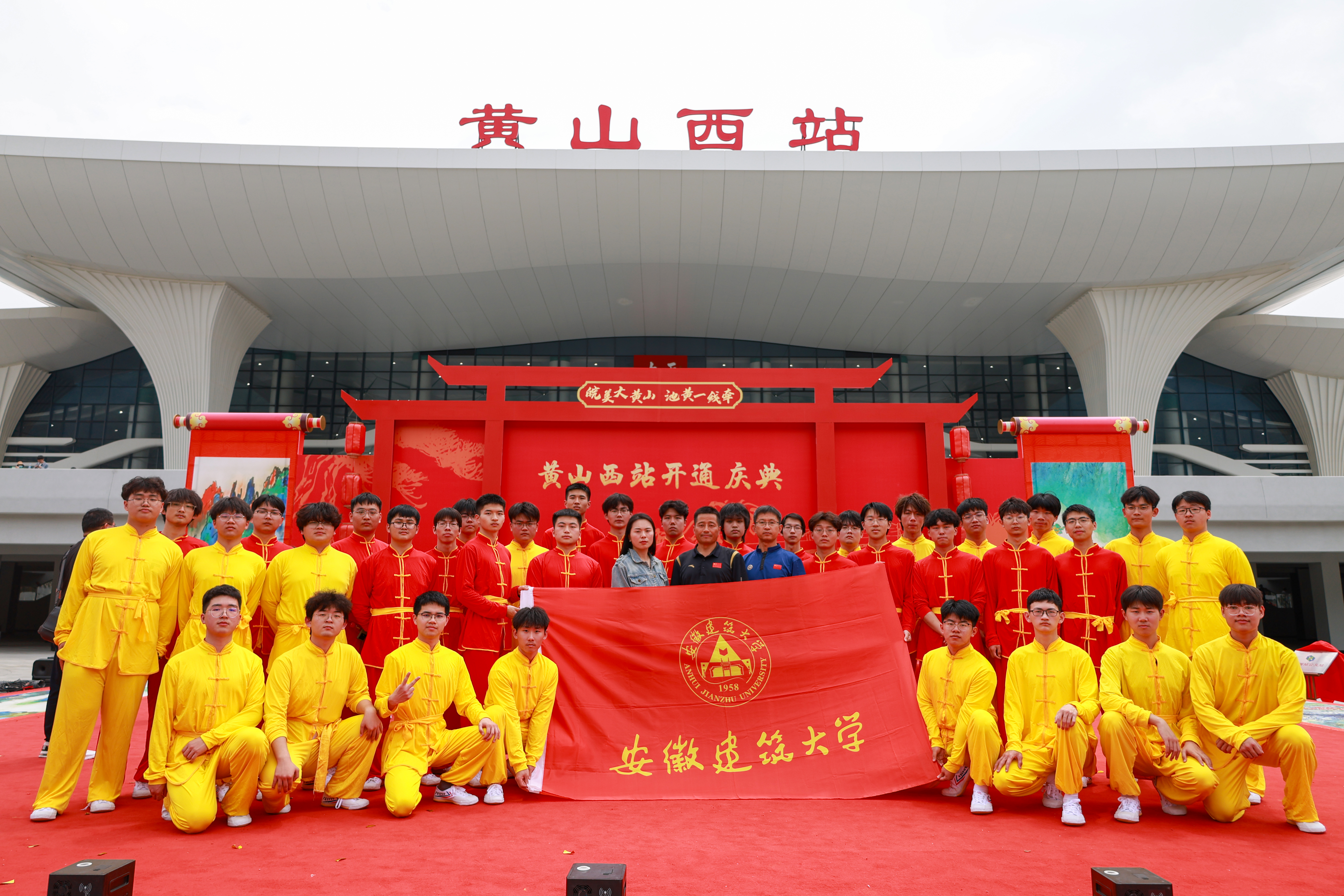 “十四五”期间,体育教学部积极拓展与地方政府、文化机构的合作,与黄山区文化体育旅游局、非遗保护中心等单位建立稳定协作机制,通过课程共建、实践教学及文化活动等多种形式,共同推动黄山区“非遗文化进校园”系列育人活动。2024年4月,我校师生受邀参与黄山西站通车仪式轩辕百车会展演,首次实现校地联动下课程与实践双重育人目的。2025年10月,轩辕滚车与舞龙舞狮项目走进中科大附属中学运动会,体现了高校文化传承与服务社会的双向赋能。通过课程共建、实践基地联建、文化活动共办等形式,为学生提供了真实、丰富的文化实践场景,强化了其社会责任与服务意识。