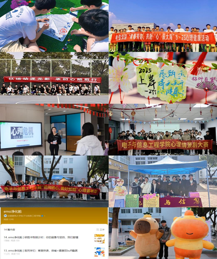 润心护航促成长,多维守护筑屏障。“十四五”期间,电信学院心理工作聚焦学生心理健康需求,构建起精准高效的支持体系。以常态化制度为根基,坚持落实“心理健康月报”“谈话台账”及心理普测,执行定期谈心谈话与排查机制,累计为300余名学生提供个性化疏导或转介治疗,有效化解学生心理困扰。学院打造特色活动品牌,连续开展心理委员培训、心理情景剧、漫画大赛等活动,“525心理健康节”“心理嘉年华”已成为年度亮点。2025年创新开启网络心理育人常态化模式,在学院微信公众号增设“emo净化舱”模块,常态化普及心理健康知识。从疫情期间的心理疏导到常态化精细管理,学院以“文化浸润、精准帮扶、网络赋能”三维发力,全方位筑牢学生心理健康防护屏障。