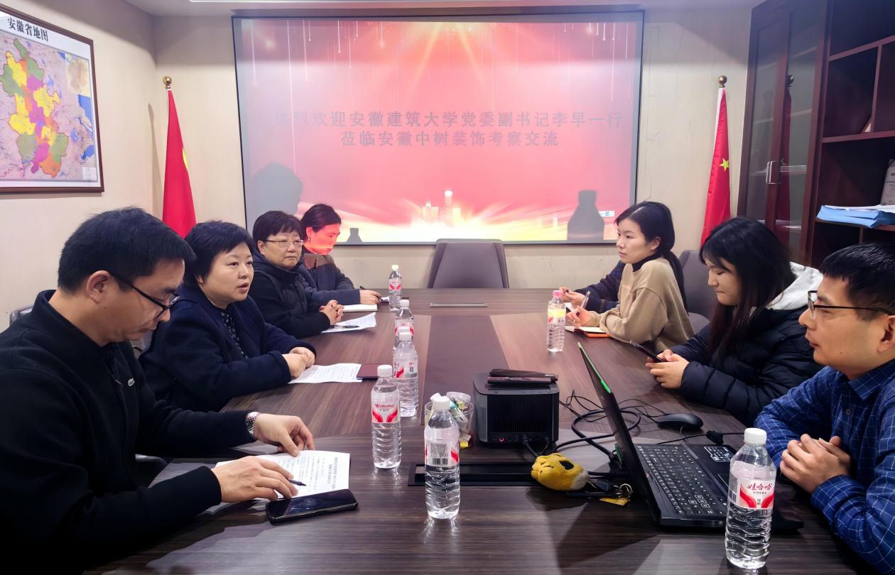 在安徽中树建筑装饰工程有限公司,校企双方开展座谈交流。设计创意学院党委书记潘青介绍了学院专业设置、人才培养特色以及2026届毕业生的生源情况.企业负责人介绍了公司的发展历程、业务板块、人才需求现状以及今年招聘形势。李早希望进一步深化校企合作,结合企业发展需求,鼓励建大学生在企业实践、就业,实现校企双赢。