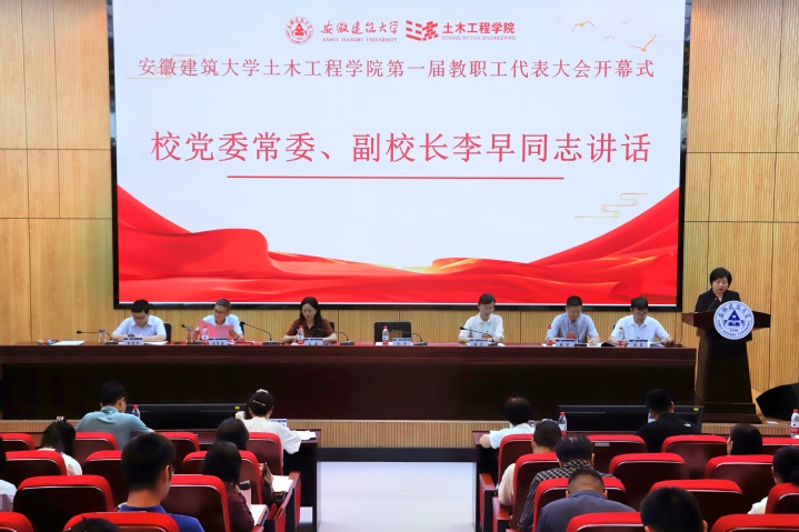 本网讯 在这初秋的美好时节,土木学院隆重举行一届一次教职工代表大会。校党委常委、副校长李早,校工会主席胡雯受邀出席本次会议,55名土木学院一届一次教代会正式代表和15名列席代表参加大会,共谋学院发展大计,共商学院发展大事。