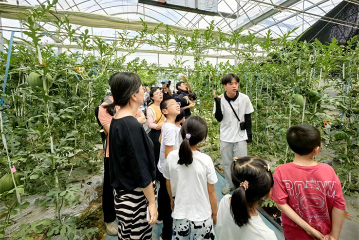 最后大家来到瓜果种植基地,农场工作人员带领大家一边参观,一边为大家科普番茄和西瓜的不同品种、种植条件等农业知识。让孩子和家长们亲身感受大自然、享受大自然的乐趣。