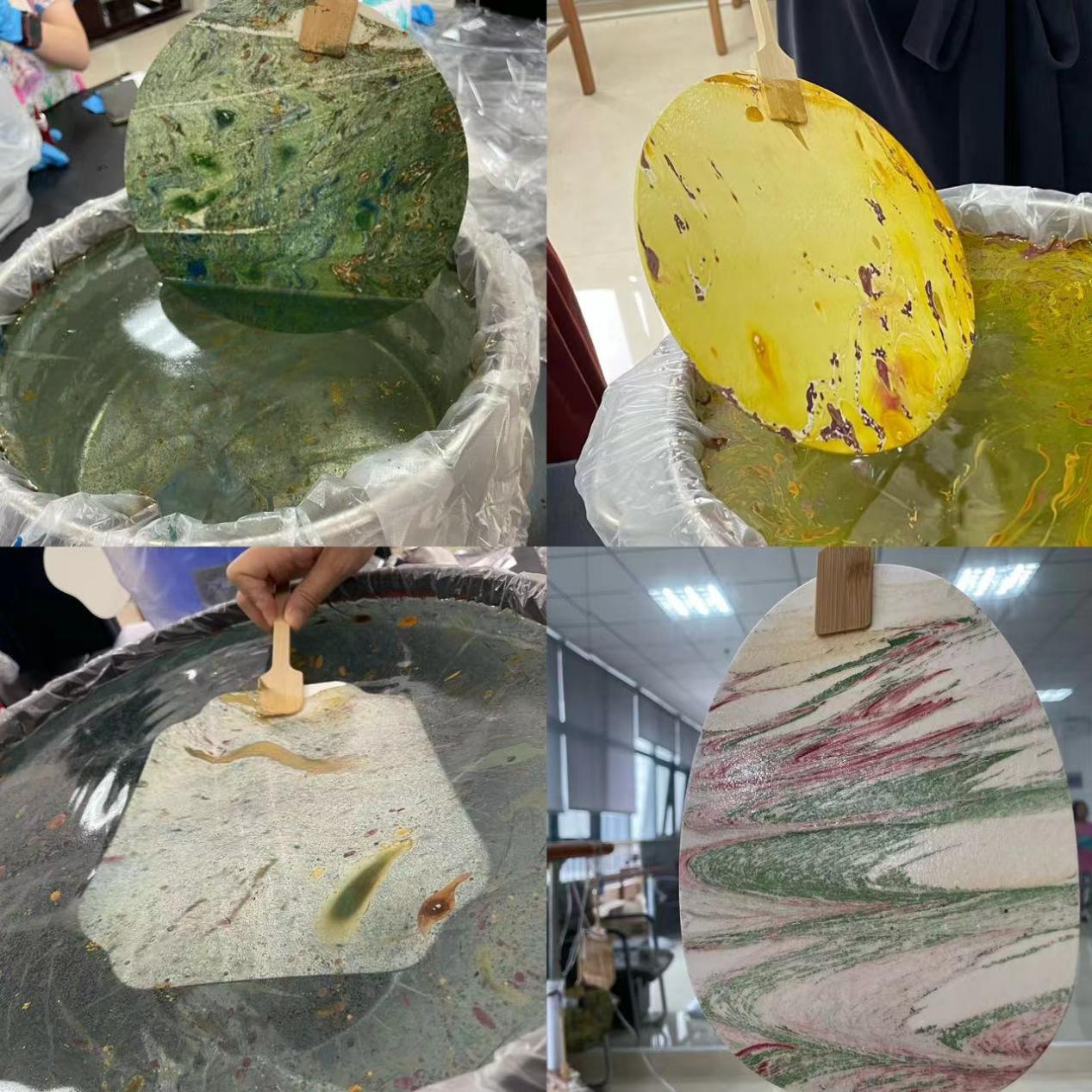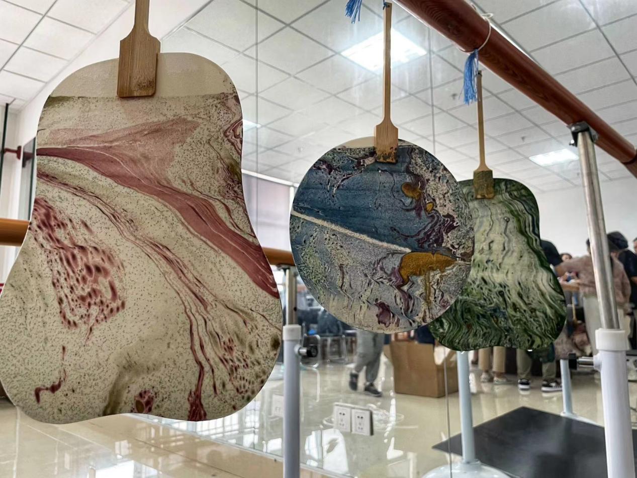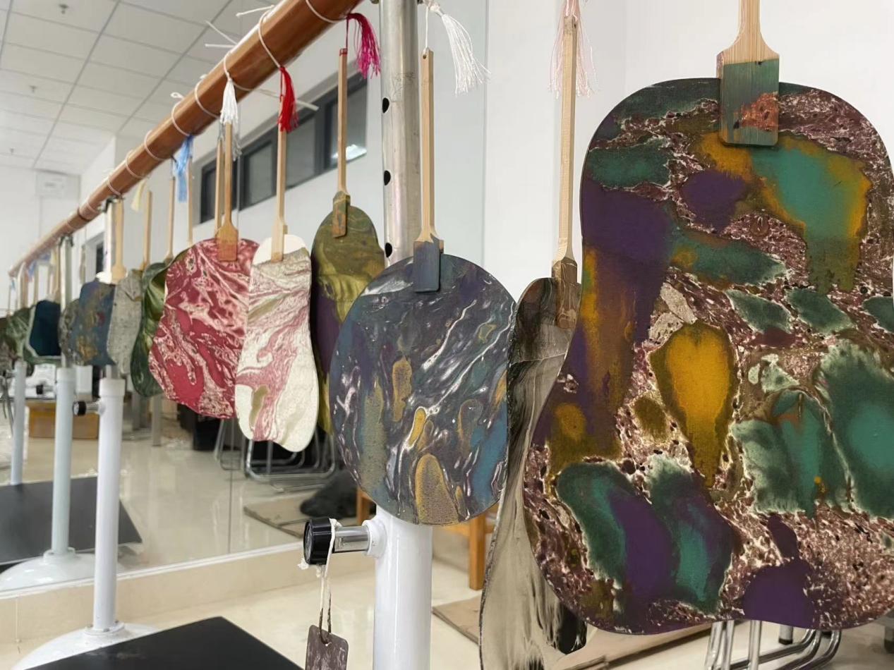 本次活动吸引了学校多个部门的教职工参加,大家都感受到了这漂漆技艺的魅力,一把把美丽多彩的漆扇,瞬间就已挂满了活动现场琳琅满目的漆扇,有的像敦煌壁画,有的像莫奈花园……美轮美奂,精彩纷呈。