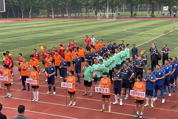 这次比赛吸引来自合肥工业大学、中国科学技术大学、安徽理工大学、安徽农业大学、安徽大学、安徽建筑大学六支队伍参赛。比赛期间,我校队伍与来自其他高校的队伍进行了多场精彩的对决,尽管面临众多强敌,我校队员依然展现出顽强拼搏的精神风貌,赢得了观众的阵阵掌声。我校“50+”教工足球队在比赛中展示了我校教职工的体育精神和团队合作能力,赛场上的每一次传球和进攻都凝聚着队员们的汗水和智慧。