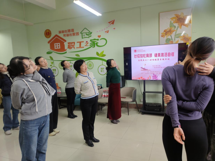 本网讯 为迎接115个“三八”国际妇女节,进一步关爱女性健康,增强教职工自我保健意识,3月5日,马克思主义学院组织开展了以“妙招放松肩颈 健美激活自信”为主题的活动。全体女教工和部分男教工代表参加了活动。