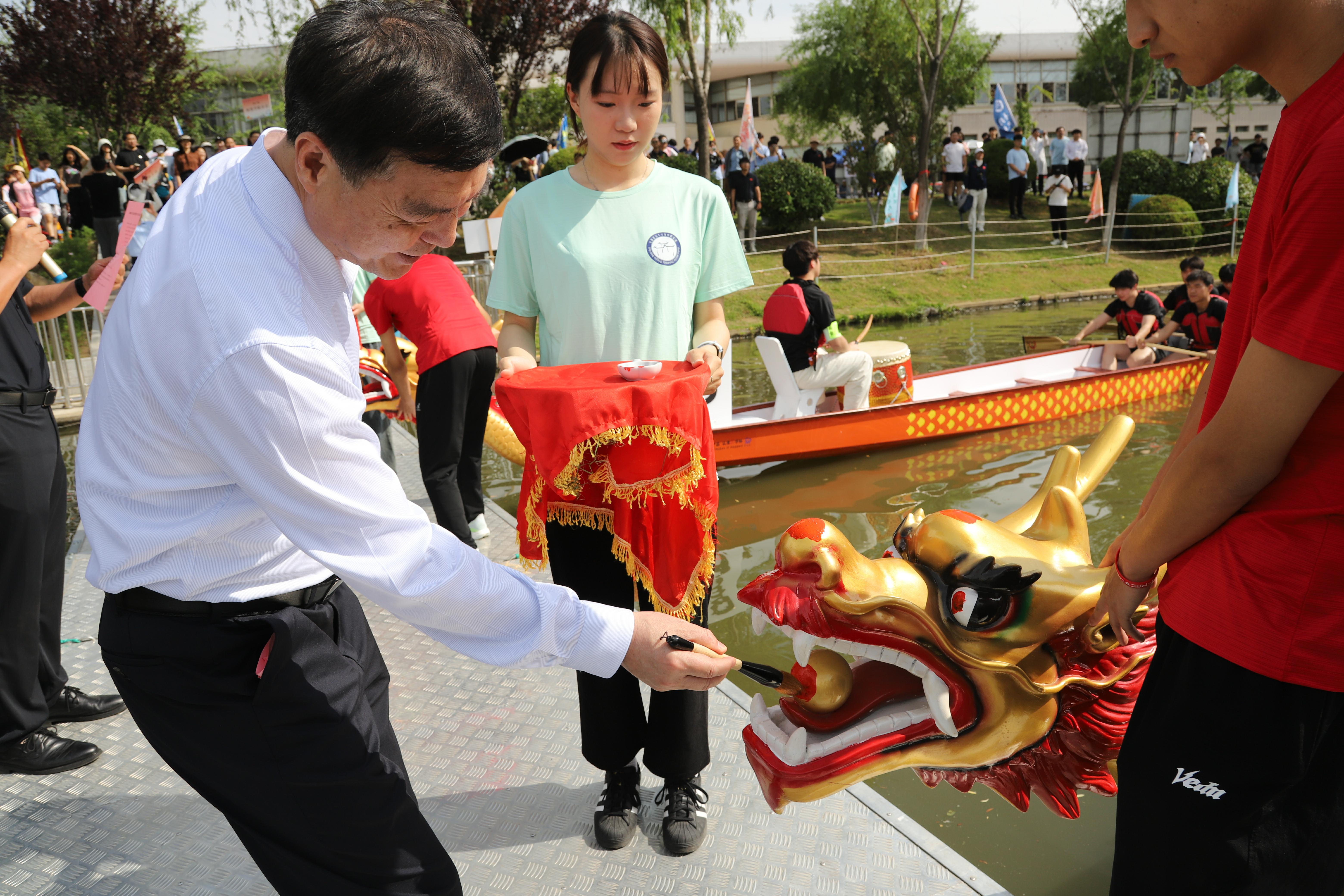 学校党委书记马文革,党委副书记、校长黄显怀为龙舟点睛