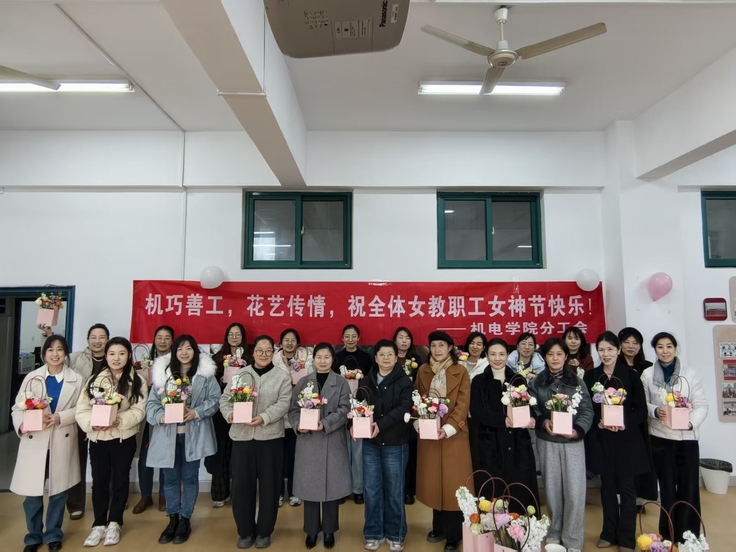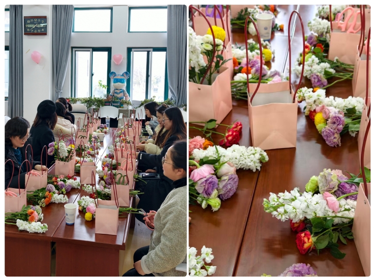 本网讯 春风送暖,花香满室。为庆祝“三八”国际劳动妇女节,丰富女教职工的文化生活,3月4日下午,由机械与电气工程学院工会精心组织的“机巧善工,花艺传情”主题插花活动在徽华楼2212会议室温馨举行。校妇联领导莅临现场,与学院全体女教职工欢聚一堂,在花香与巧思中感受节日的美好。