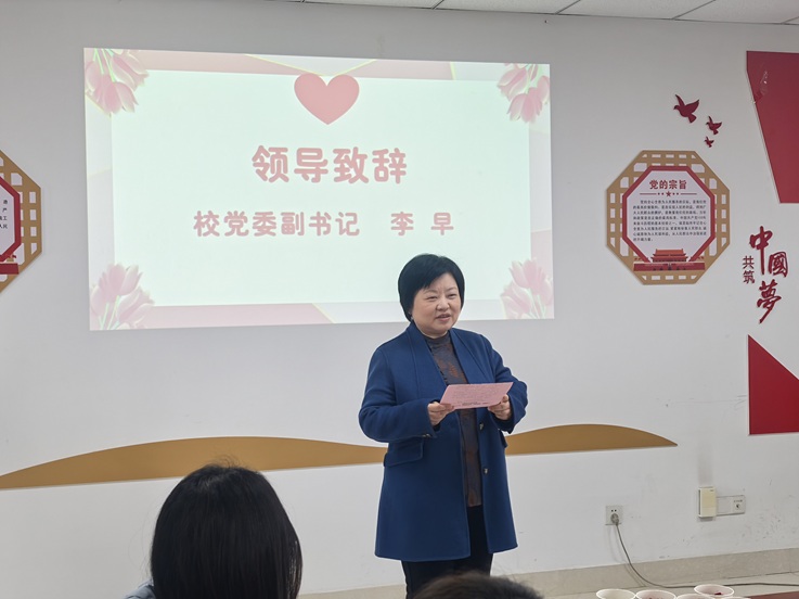 随后,校党委副书记李早发表热情洋溢的致辞。她指出,广大女教职工以“巾帼不让须眉”的担当,在教学、科研、管理各条战线上锐意进取,为安徽建筑大学高质量发展注入了强大的“她力量”。电信学院的女教职工们更是不负芳华,在专业建设、人才培养等方面屡创佳绩,展现了新时代女性的风采与智慧。李早表示,学校党委始终关心女教职工的成长,未来将继续为大家搭建更广阔的舞台,创造更温馨的工作环境。