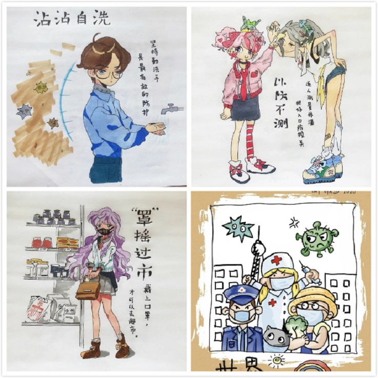 为展示广大青年团员积极参与疫情防控和决战决胜脱贫攻坚的青春形象,学校举办红色信息征集活动。艺术学院18级环境设计专业房星佳、邓微制作了漫画版《抗疫科普宣传片》;环能学院19级环境工程专业李明钰、电信学院18级物联网工程专业赵颖慧创作了抗疫宣传画;材化学院16级应用化学专业裴璐瑶编写了红色短信《牢记使命》;电信学院18级计算机科学与技术专业狄宗哲拍摄记录了自己在社区志愿服务期间的所见所闻,志愿者们同社区工作人员一起,凝心聚力、扛责在肩、以身作则、勇挑重担,展现了青年团员主动担起历史使命和政治责任,在疫情防控第一线拼搏奉献的青春风采等。