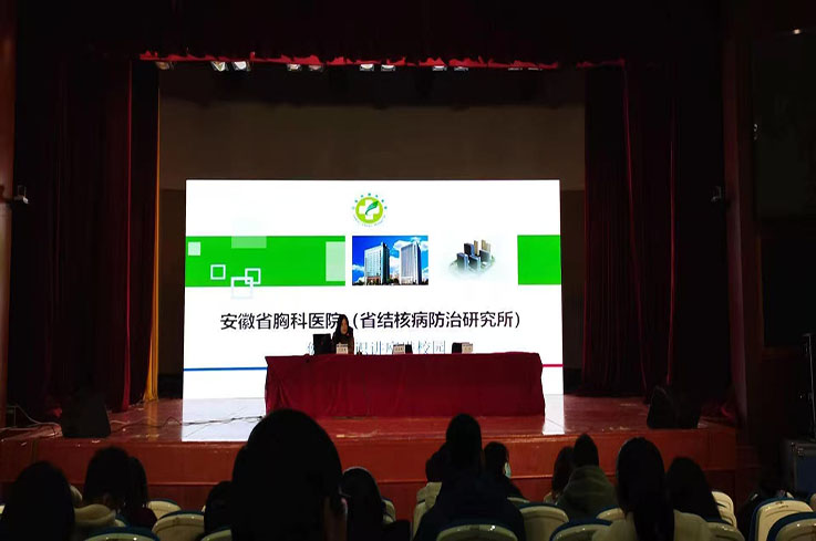 本网讯 11月27日,为了进一步强化我校学生的疫情防控意识,做好冬季流行疾病的预防工作,普及传染病的相关预防治疗知识,学校在南校区大学生活动中心报告厅举办了以“冬季流行疾病的预防及新冠疫情的防控”为主题的健康大讲堂,由校团委书记唐志敏主持、安徽省胸科医院感染控制办公室副主任丁宏萍,呼吸内科副主任医师王敏主讲、安徽省胸科医院党委办公室副主任王媛应邀出席。