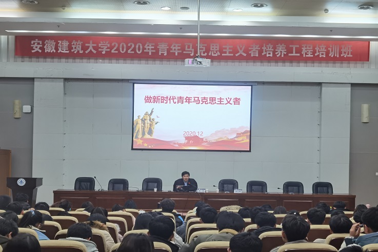 本网讯 12月24日,学校2020年“青年马克思主义者培养工程”培训班开班仪式及首场理论讲座在南区图书馆5楼报告厅举行,近200名培训班学员参加本期学习,共青团安徽省委员会组织部部长姜慎、东方航空公司安徽分公司团委书记杨嘉玮、安徽医科大学团委副书记高晓妹应邀出席,校团委书记唐志敏主持开班仪式。