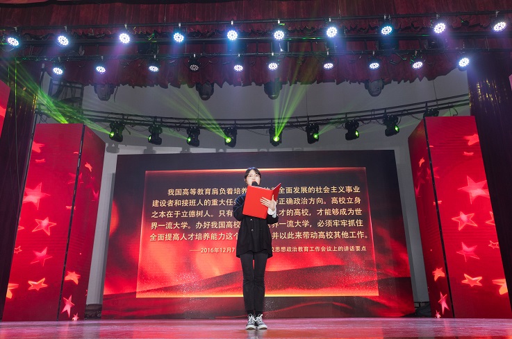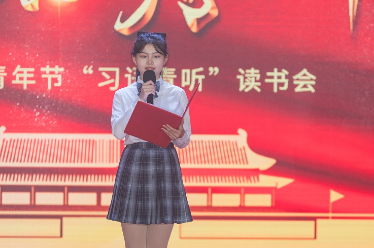 习语近总书记人润心田,活动育人谱新篇。首先,由优秀团干、优秀团支部书记、优秀抗疫志愿者获得者等6名同学诵读习近平总书记语录,他们用铿锵有力的声音、激情澎湃的话语,不忘习近平总书记的教诲,树立梦想从学习开始、事业靠本领成就的观念。习近平总书记的好思想、好声音已经翻译成21种语言全世界传播,来自外国语学院的学生会轮值主席李艳同学更为我们带来《习近平谈治国理政》海外版节选语录,青年代表用其深厚的专业功底,加之深情的注入,给现场观众带来一场思想的洗礼。