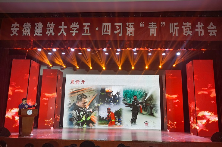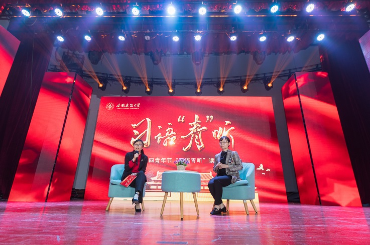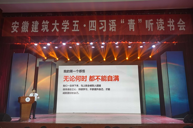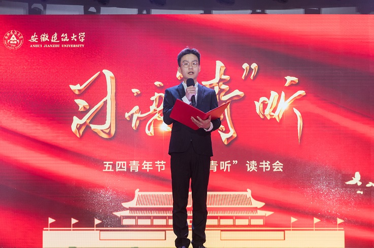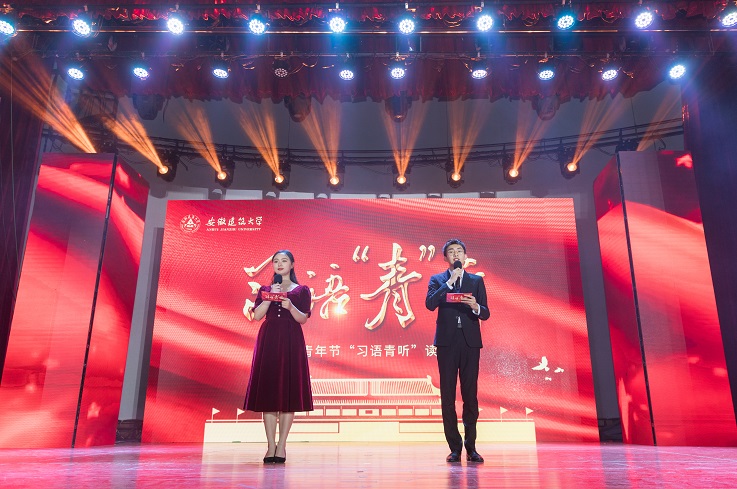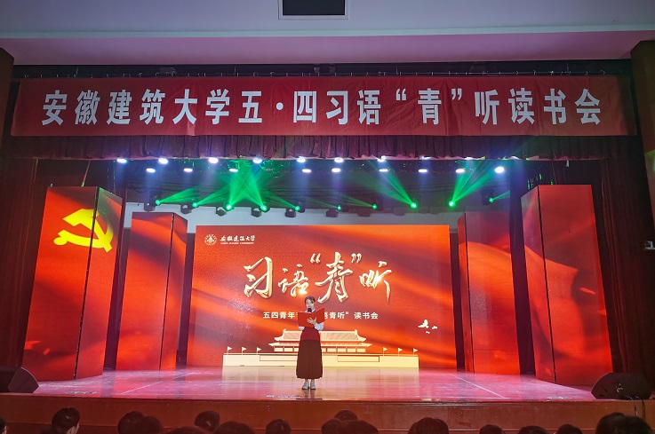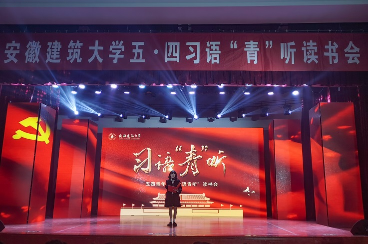 本网讯 百年征程,百年华章。为庆祝建党100周年和五四青年节,深入推进“学党史、强信念、跟党走"学习教育,4月27日晚,学校在大学生活动中心举办习语“青”听读书会活动,安徽省文明办副主任李国兵,安徽省发展和改革委员会科学中心处处长朱的娥,共青团安徽省委学校部部长卢蓉,校党委副书记吕萍,和建大学子一起学习习近平总书记经典著作。