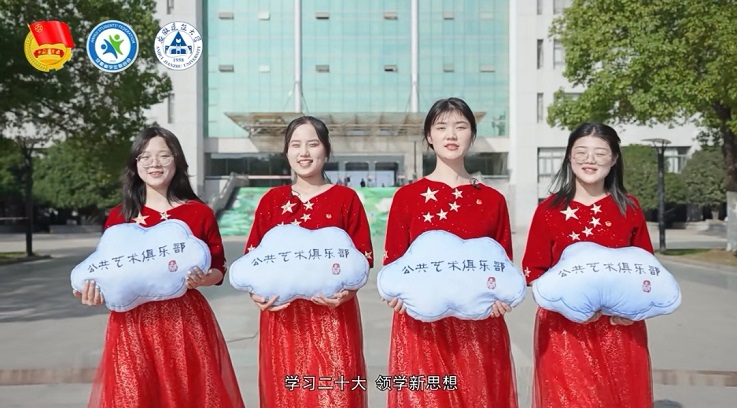 本次活动主要围绕青年学子领读党的二十大报告内容,以视频为媒介,大力弘扬党的二十大精神,学习习近平新时代中国特色社会主义思想,我校公共艺术俱乐部高级会员闻艾钰、解莹盈、叶梓和刘佳璇作为领读者参与此次活动,引导、激发同学们读原著、学原文、悟原理,用青春的声音掀起学习的热潮。慷慨激昂的朗诵,不仅展现了建大学子的个人风采,也体现了同学们对党的二十大的关注与对自我的思考,更坚定了同学们与党同心、跟党奋斗,为实现中华民族伟大复兴贡献青春力量的信念。