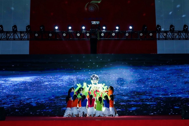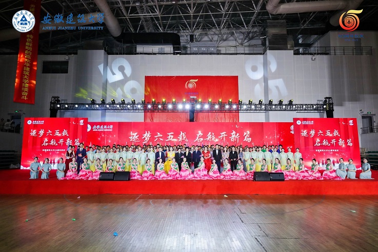 本网讯 2023年5月5日,安徽建筑大学迎来了65周年校庆。六十五年栉风沐雨、踏歌而行,安徽建筑大学始终坚守为党育人、为国育才的初心使命。当晚,在学校南区体育馆内,三千余名师生校友在线下、130万余名观众通过线上直播平台观看文艺演出。
