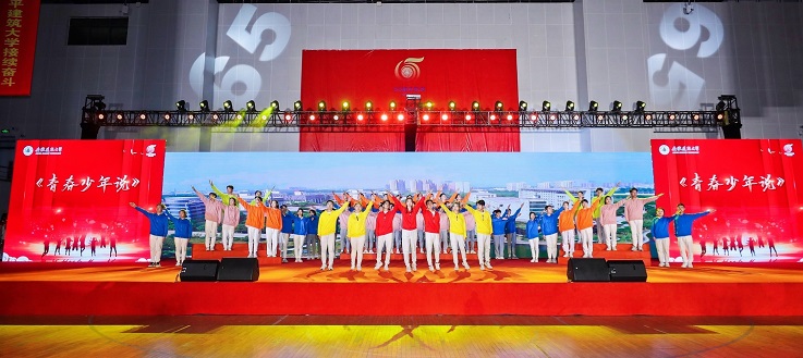 恪守正道,与祖国共进;开拓创新,与时代同行。六十五年峥嵘岁月,斗转星移几度浮沉,在一代代建大儿女的共同奋斗下,在艰难困苦中铸就了建大精神。六十五年铿锵荣光,筚路蓝缕心系家国,按照立足内涵式建设发展的要求,建大人敢为人先,上下求索,大力推进“科技创新工程”,为建成一所高质量发展的省属重点大学持续发力。《激荡六五载》高诵一代代建大人的耕耘求索之路,重温几辈人的青春报国之路,彰显了安徽建筑大学与祖国同呼吸、共命运的责任感和使命感!舞蹈《百舸争流》通过振奋人心的舞姿,展现了建大学子对未来的期许展望,寓意建大奋斗新征程的智慧与勇气。