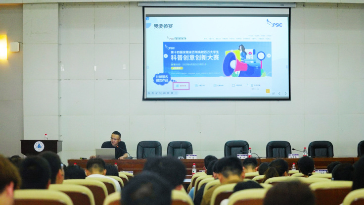 叶浩对本届安徽省“双百”大赛比赛规则、本届创新、奖励办法等做出了全面的解读与分析。同时,结合往年参赛同学作品存在的问题及本届大赛新的要求给学生提出了一些建议。