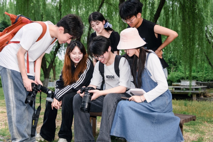 经纬书院内,传统曲艺魅力尽显。同学们表演的相声以字正腔圆的贯口、默契十足的捧逗,让书院回廊萦绕着浓郁的艺术气息。朗诵俱乐部在书院内,字斟句酌打磨台词讨论剧本,深切感受语言艺术的独特魅力。与此同时,民乐俱乐部成员指尖灵动,音符如涟漪在庭院水池中散开,与书香墨韵相融,绘就一幅雅致的文化图景,情景剧俱乐部在校史馆,依托馆藏文献资料,深入挖掘校史故事,找寻厚重的校史记忆,以“沉浸式”创作表达对学校深厚的感情。摄影穿梭各活动现场,用镜头定格美育实践的精彩瞬间。