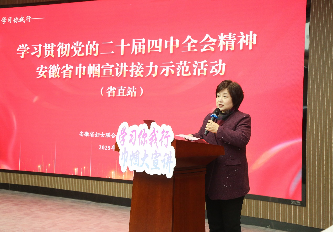 活动开始,李早代表学校向长期以来关心支持学校发展和妇女工作的社会各界朋友表示最衷心的感谢。希望全校女性师生以此次宣讲为契机,认真学习、深入思考、积极践行,把会议精神转化为教书育人、科研创新、成长成才的强大动力,转化为推动学校高质量发展和服务安徽现代化建设的实际行动。也期待以此次活动为纽带,进一步深化与省妇联及各界的交流合作,共同为妇女事业发展、为强国建设民族复兴伟业贡献智慧和力量。