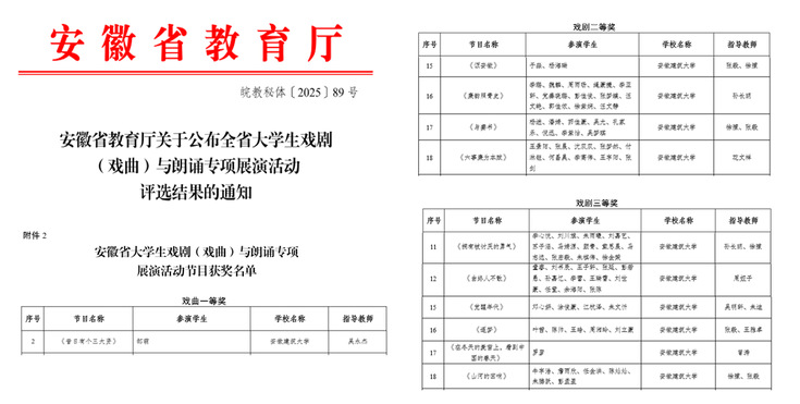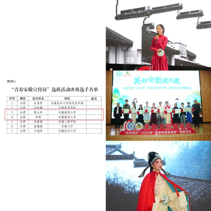 强调“教育性”,红色美育培树青春正气。2025年校团委将“五史”教育与校园文化建设紧密结合,打造青年话语体系的“红色引擎”;弘扬中华传统文化,筑牢青年红色文化根基,让红色基因融入青春血脉。在安徽省大学生戏剧(戏曲)与朗诵专项展演活动中,校团委统筹协调,联合各学院协同发力,紧紧围绕“弘扬中华优秀传统文化”的主题,精心打磨参赛作品,70余名参演学子以饱满的热情和昂扬的姿态,一举斩获一等奖1项、二等奖4项、三等奖6项,共计11项省级荣誉,充分展现了我校师生团结协作的精神风貌;承办团省委“美好安徽我来说”选拔赛,两名学子成功晋级全省总决赛并获2025年“青春安徽宣传员”称号,生动诠释了学校在美育育人工作中取得的扎实成效。