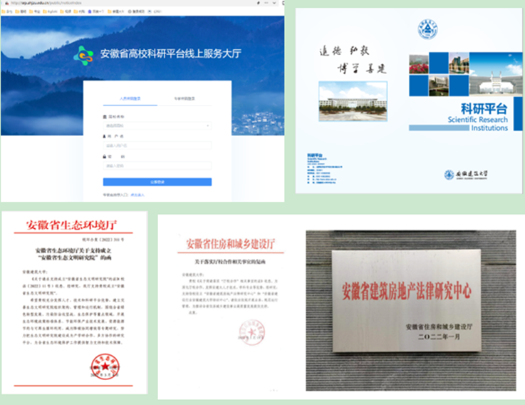 积极发挥学校在智能地下探测、新型显示、生态环保、防火防灾、智慧乡村等领域优势,2022年获批成立安徽省智能地下探测与环境岩土工程研究中心(筹)、安徽省新型显示产业共性技术研究中心、安徽省生态文明研究院、安徽省智能地下探测技术研究院、安徽省建筑房地产法律研究中心、安徽省膨胀土力学与工程研究院、安徽省城乡建设防火防灾研究院等7个省级平台,智慧乡村与协同治理安徽省哲学社会科学重点实验室获培育建设,同时新增校级科研平台3个。