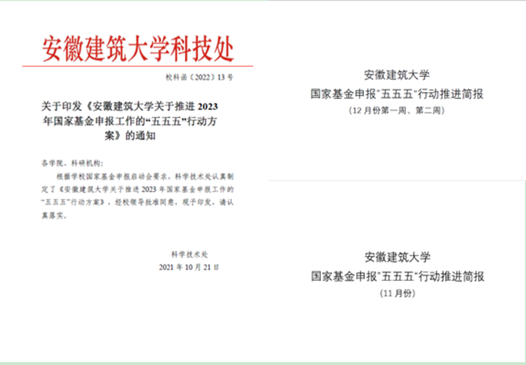 为加强国家基金、国家重点研发计划等国家级项目申报工作,制定2023年国家基金申报工作的“五五五”行动方案和工作计划,通过营造氛围、练好内功、交流合作、压力传导、目标考核,争取“十四五”期间国家基金立项数量和质量取得较大突破。