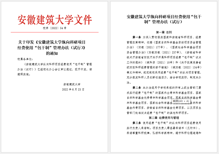 学校奋力推进科技创新体系和创新能力建设,全面提升科技创新治理能力。为规范我校采用经费“包干制”的纵向项目管理,充分激发科研人员创新创造活力,结合学校实际出台《安徽建筑大学纵向科研项目经费使用“包干制”管理办法》;根据当前学校科技管理的需要,完善科研管理制度,修改并完善《安徽建筑大学横向研项目及经费管理办法》、《安徽建筑大学纵向科研项目及经费管理办法》,进一步规范科研项目及经费管理,为科研人员营造更好的科研氛围。