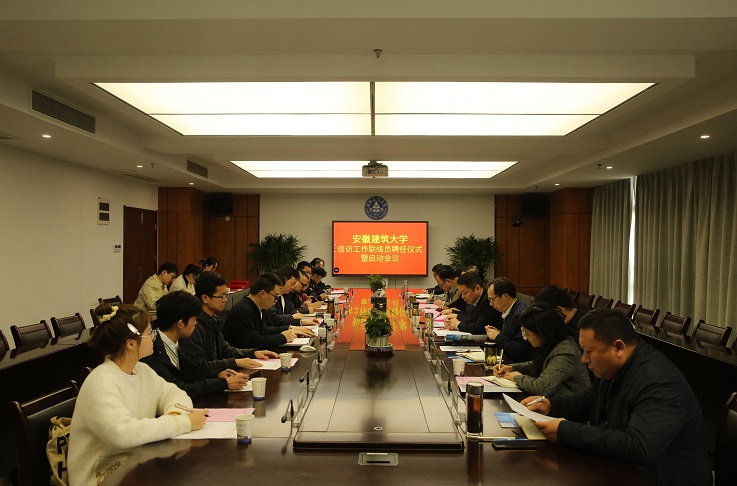 本网讯 3月31日,学校在南校区实验综合楼21楼第二会议室举行信访工作联络员聘任仪式暨启动会议,校党委书记孙道胜出席会议,办公室、学生处、人事处、国资处、保卫处、图书馆、土木学院主要负责人及信访工作师生联络员参加会议,会议由办公室主任马宾主持。