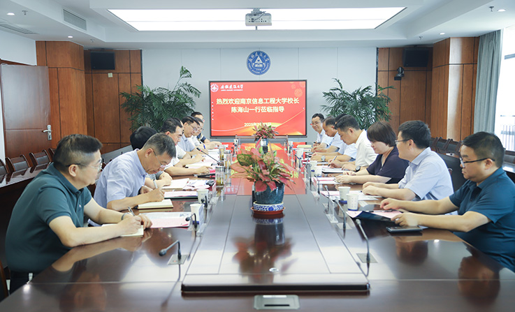 本网讯 7月18日,南京信息工程大学党委副书记、校长陈海山,校党委常委、副校长刘佳率代表团来校考察交流。我校党委副书记、校长蔡国军主持座谈交流会,校党委常委、副校长杨科及学校办公室、统战部、教务处、研究生院、科技处、科技成果转化处等相关单位负责人参加座谈。