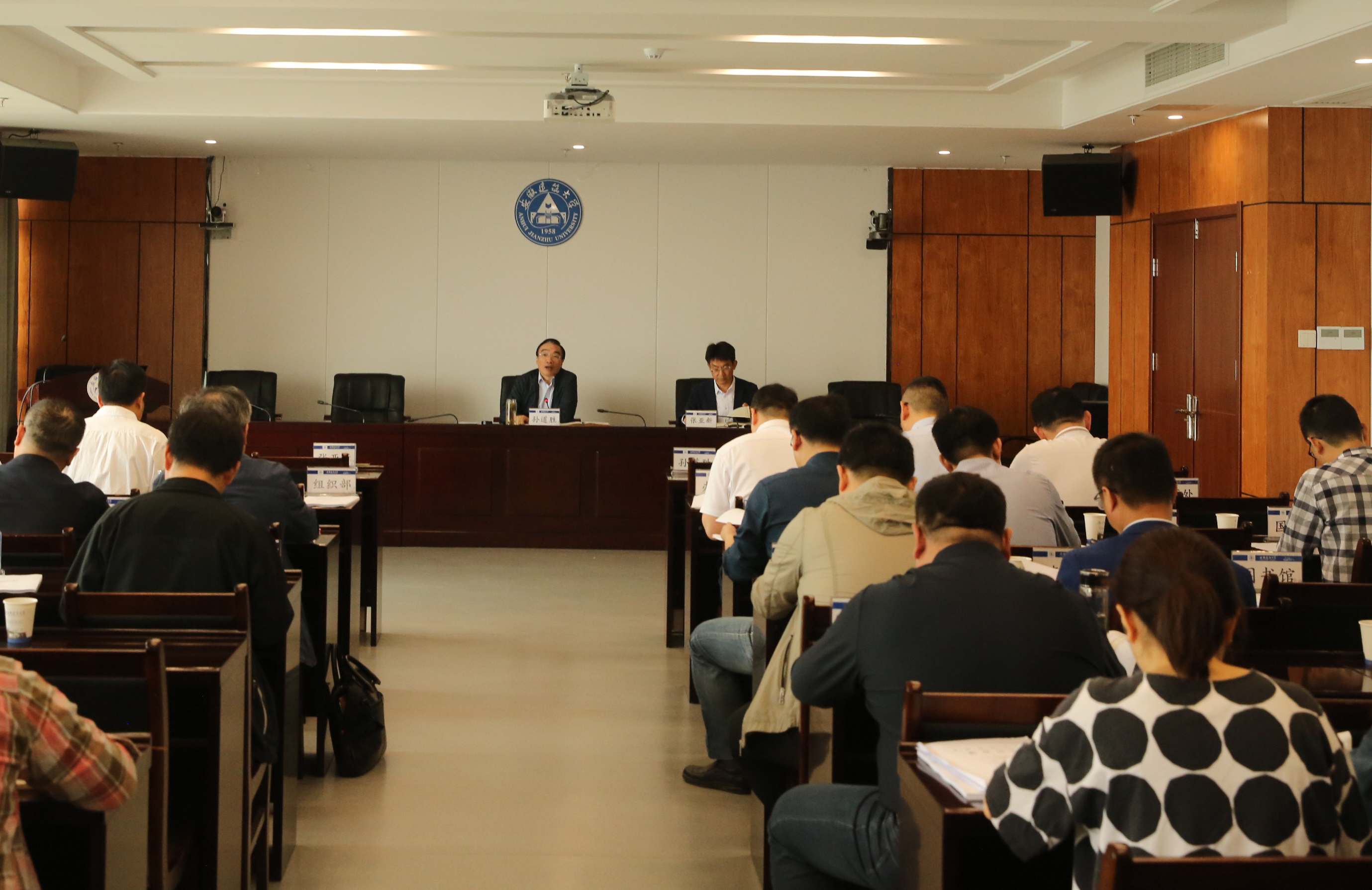 本网讯  4月21日上午,学校在21楼第一会议室召开评建工作领导小组专题会暨评建改工作成效汇报会。校审核评估领导小组组长、校党委书记孙道胜主持会议,校评建工作领导小组成员、有关汇报单位主要负责人、评建办全体成员参加会议。
