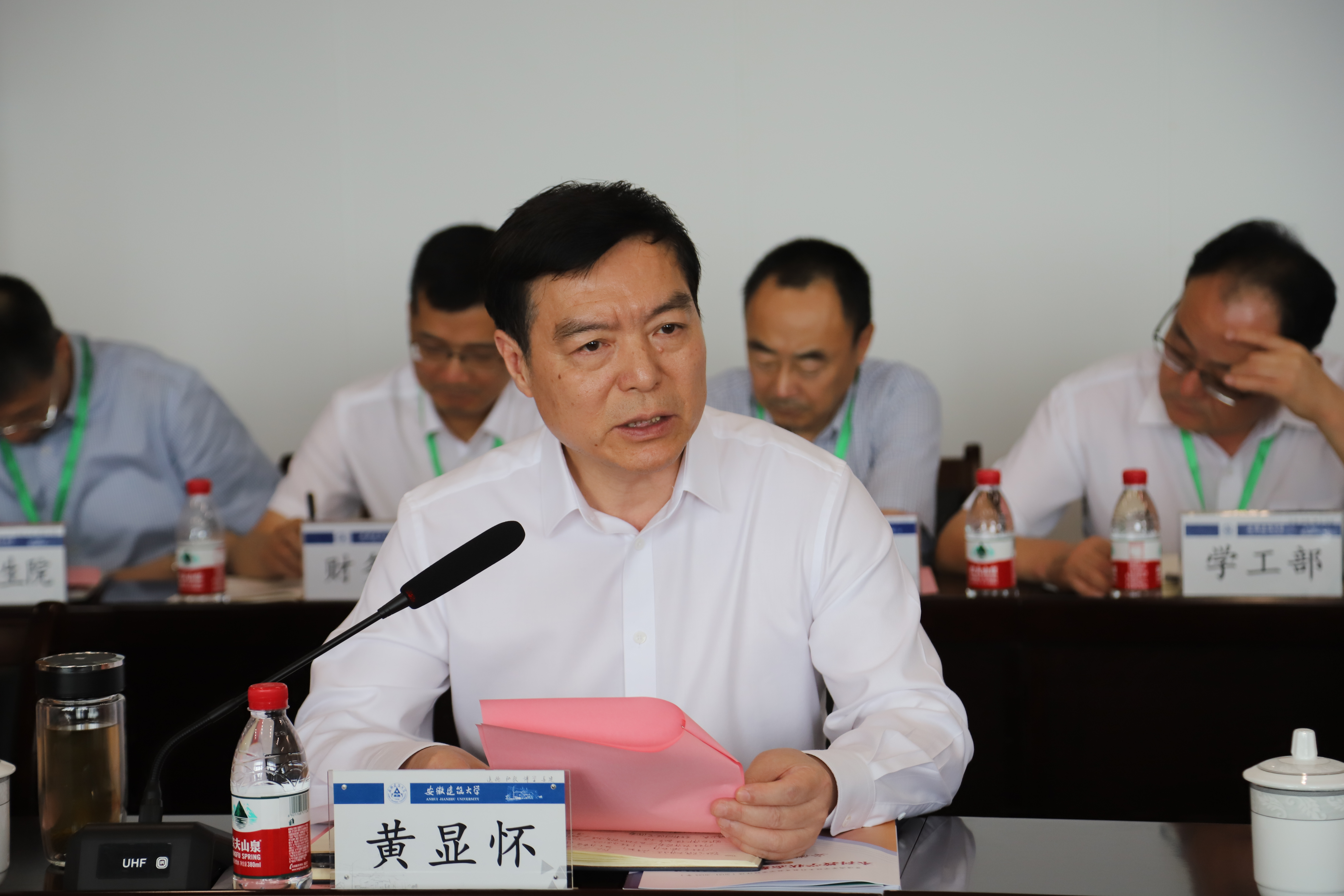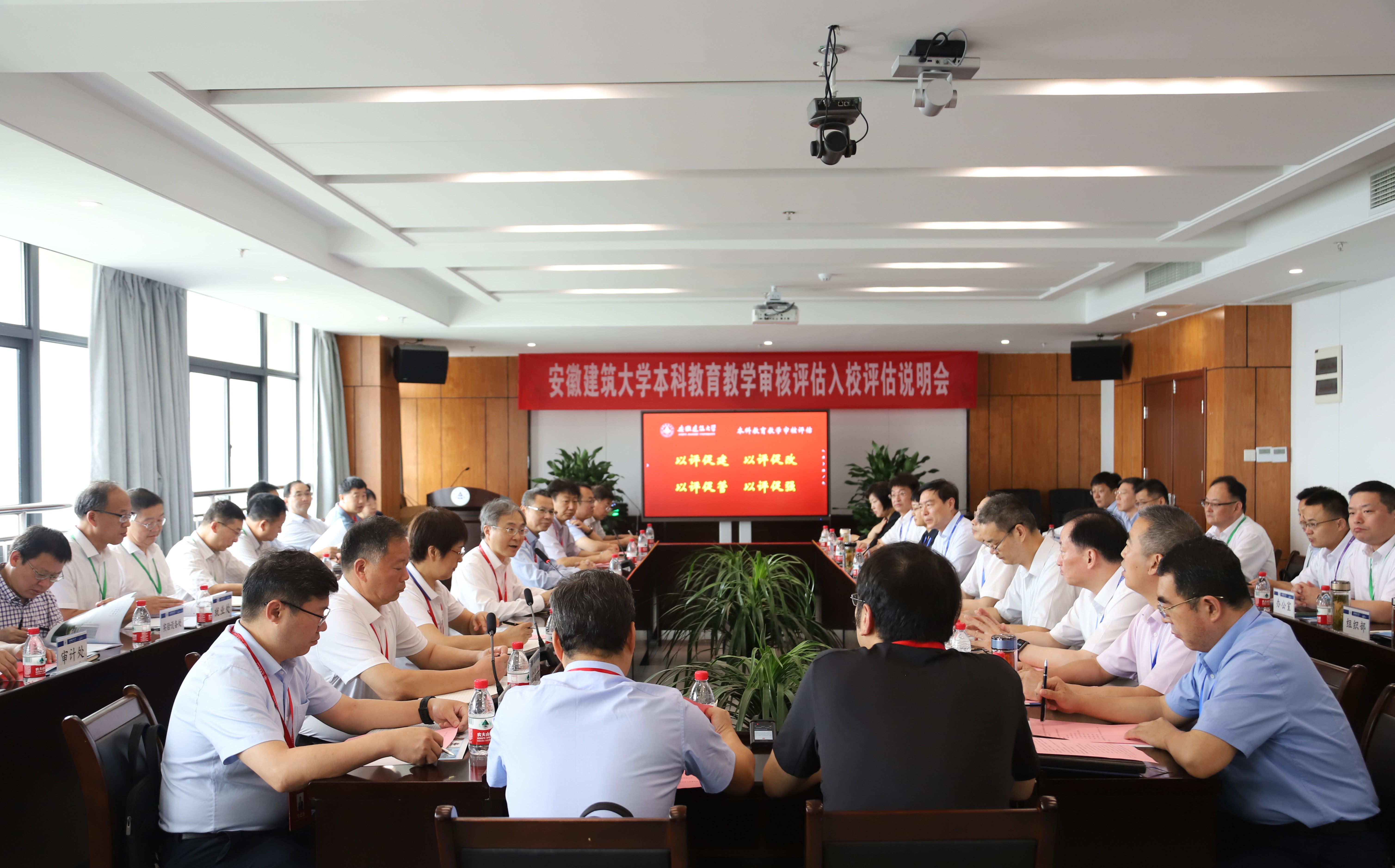 本网讯 6月19-21日,安徽建筑大学接受本科教育教学审核评估专家组入校评估考察。6月19日上午,入校评估说明会在南校区实验综合楼21楼第一会议室召开。审核评估专家组组长、上海科技大学常务副校长印杰,专家组成员五邑大学党委书记张焜、河北体育学院党委副书记曹荣、山东建筑大学副校长邱立平、安徽理工大学副校长宫能平、东北林业大学教务处处长李明泽、南京信息工程大学教务处处长马廷淮、安徽农业大学高教研究所所长方明,项目管理员郑光才,秘书许凯、李娟,安徽省教育厅高等教育处副处长朱永国出席说明会。全体校领导、各职能部门和教学单位党政主要负责人参加会议。会议由印杰主持。