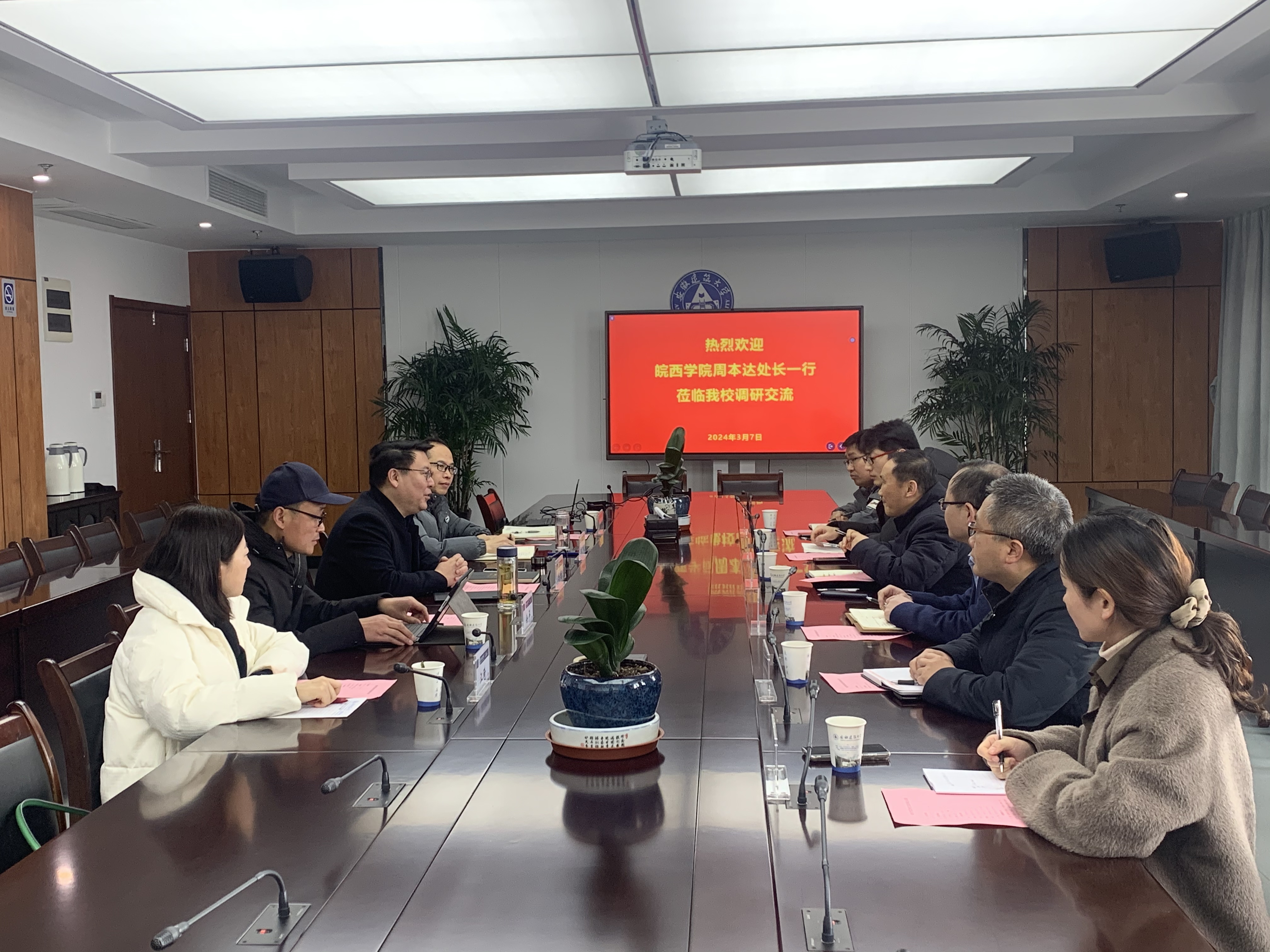 周本达表明此次来访主要是调研交流我校在审核评估和本科教学工作中好的做法,并简要介绍了皖西学院审核评估工作开展情况,以及在审核评估中存在的困惑,希望我校能够传经送宝,把好的经验和做法带回去。