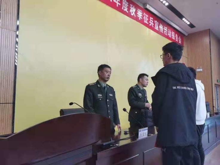 会上,朱部长从部队发展的形势和需要、大学生参军入伍的意义和追求入题,为学生们解读了今年征兵的条件和相关政策,鼓励有意愿的同学积极报名参军,勇于担当,在实现中国梦、强军梦中彰显人生价值。同时详细介绍了高校大学生应征入伍可享有的优先考学提拔、学费补偿代偿、退役后享受就学就业优惠等优抚政策,并在讲座后就毕业生关心的提干、考研等事项进行解答。