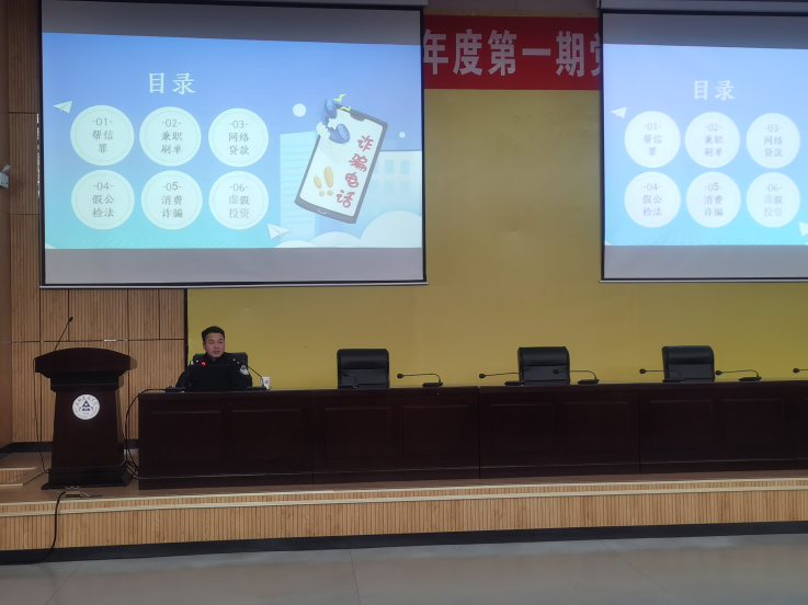 周力警官从帮信罪、兼职刷单、网络贷款、假公检法、消费诈骗、虚假投资等六个方面,结合不同案例、动画、短视频等多种形式给现场师生讲解电信诈骗危害以及防范电信诈骗常识,将《中华人民共和国防范电信网络诈骗法》有关规定解读融入其中,以当代大学生喜闻乐见的方式讲授防范电信诈骗技巧,提醒师生遇事多咨询、多请教。周力警官又结合《安徽省电动车自行车管理条例》实施以及自身从事交警期间工作经历,与现场师生互动交流,分享对于日常安全骑行和驾驶应当注意的有关事项,提醒师生骑行一定要佩戴头盔,按规定道路行驶。学校保卫处处长汪翼湧向现场师生通报春季开学以来学校电诈警情及校园交通情况,解读学生有关规定要求,号召师生共同营造文明安全的校园环境。