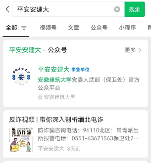 为了帮助你平安、顺利地度过美好的大学时光,学校保卫处在微信公众号“平安安建大”中设置安全教育答题内容。你可以通过手机或网页端随时随地学习,牢固掌握安全知识,全面提升安全技能和素质。在报到前,请按如下方式自主完成答题: