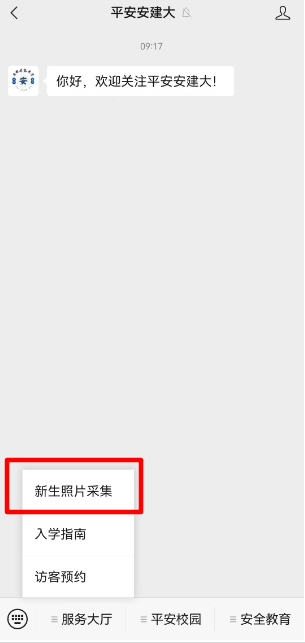 新生入校前可登录“平安安建大”微信公众号,在服务大厅中完成“新生人像采集”自主上传流程,入校时可以自行刷脸进入校园。如有照片采集上传异常,可凭学校录取通知书、身份证等有效证件进校,并请尽快到紫云路校区徽风楼118室保卫处现场录入,金寨路校区学生到建安楼106警务室录入。