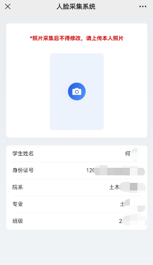 注意:照片采集后不得修改,请妥善上传本人照片。
