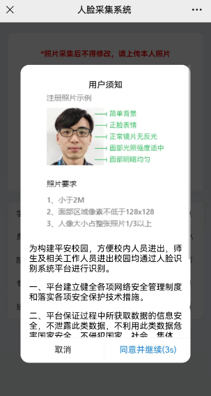 5.拍照前阅读用户须知,选择同意后进行拍摄照片并上传。
