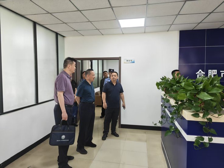 本网讯 2025年6月3日,安徽省公安厅总队二级警务专员孙大连带队来我校开展校园安全工作专项督导工作,合肥市经开分局局长李韬、合肥市经开区公安分局党委委员、锦绣派出所所长方伟等警务人员陪同。保卫处负责人向督导组汇报学校安全工作落实情况,重点介绍政治舆论防控、治安治理及反诈防诈成效。