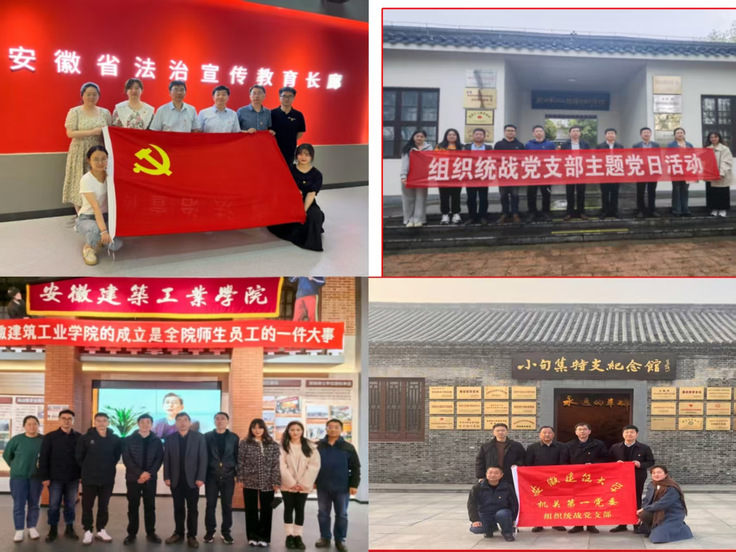 党支部认真组织开展“主题党日”活动,强化支部党员党性锻炼和警示教育,深刻认识“我是谁,从哪里来?到哪里去?”2023年7月7日,全体党员赴安徽省法治宣传教育基地接受普法教育,安徽省法治宣传教育基地是安徽省法宣办、安徽省司法厅依托原合肥监狱办公楼旧址打造的全国第一家省级法治宣传教育基地,是具有安徽特色的省级普法宣传教育阵地;通过参观学习,大家受到了一次深刻普法教育、警示教育和党性教育。9月22日,全体党员前往合肥滨湖国际会展中心参观2023世界制造业大会会展;11月24日,全体党员就近就地就便,参观学校校史馆。2024年4月2日,支部党员赴新四军江北指挥部纪念馆开展主题党日活动。大家瞻仰了叶挺等先烈铜像,观看了200余幅珍贵的历史照片、图表和文献资料,感悟了新四军江北指挥部的组成、发展和壮大过程,革命先烈为实现中华民族的解放,不畏艰苦、不怕牺牲的大无畏革命精神,支部党员受到了一次深刻的党性教育和心灵洗礼。10月24日,组织全体党员观看《志愿军:存亡之战》,开展了一次生动的爱国主义教育和党性锤炼。12月26日,党支部赴寿县小甸镇开展党组织结对共建活动,签订《党组织结对共建协议书》,双方通过结对共建,相互学习借鉴基层党建工作的好方法好经验。在小甸集特支纪念馆前举行了“党性教育基地”挂牌仪式;在革命烈士纪念碑前,大家面向鲜红的党旗重温入党誓词,严肃认真地开展一次政治生日活动。