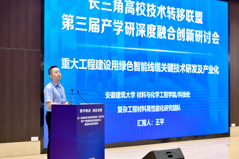 在“揭榜挂帅”环节,我校丁益教授科研团队与安徽知华粉体装备科技有限公司代表现场签约“低含粉率机制骨料关键技术研发及产业化”,项目总金额1600万元。在“成果路演”环节,我校王平副教授以“重大工程建设用绿色智能防火电缆关键技术研发及产业化”为题做项目路演,并与来自长三角地区数十家企业代表进行了深入交流和后续对接。