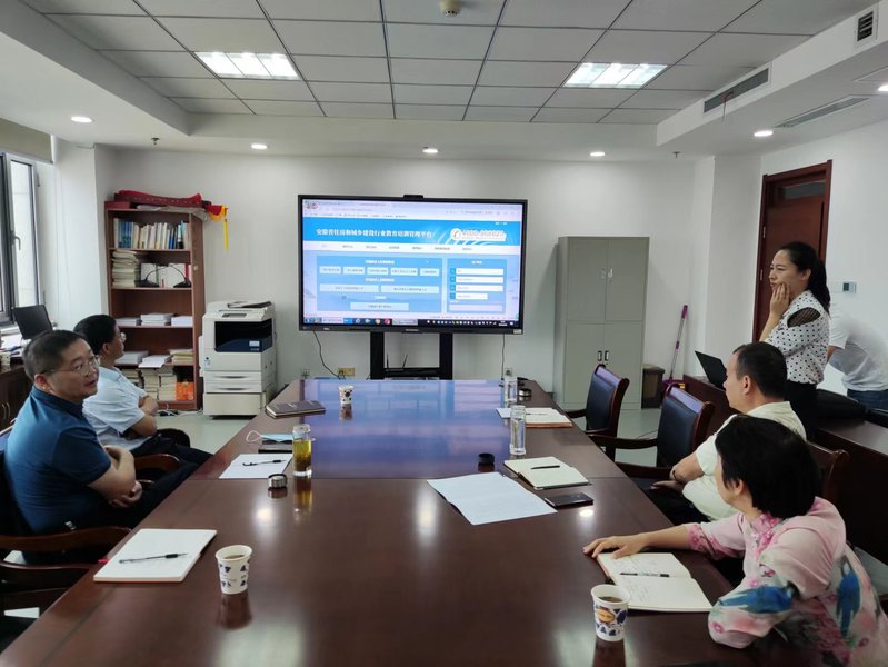 史劲松介绍了安徽省建设干部学校的发展历程、组织架构、办学特色和规章制度。工作人员演示了安徽省住房和城乡建设行业教育培训管理平台的各项功能。