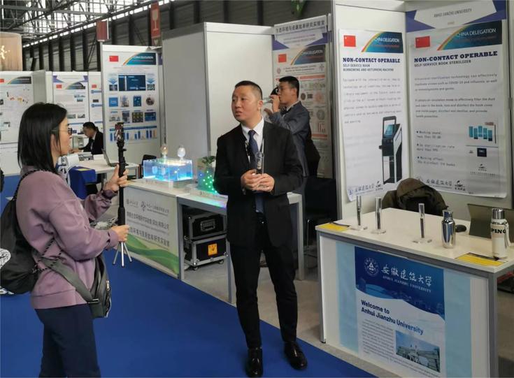 安徽建筑大学代表团向国际参展代表和评委介绍学校技术成果