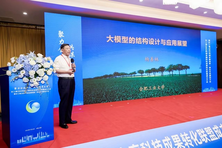 杨善林院士作了“大模型的结构设计与应用展望”主旨发言,生动介绍了AIGC在科学发现、技术发明、工程创新中发展与应用。第一届联盟秘书长单位、理事会代表单位及成员单位代表分别进行了发言,分享了成果转化与场景创新的先进经验。
