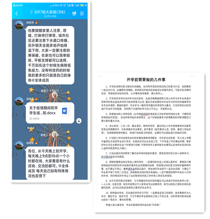 作为辅导员,引导学生在家科学防疫、自觉承诺;坚定信心、众志成城;为武汉加油、为中国加油!(作者:胡明亮;审稿:汪翼湧)