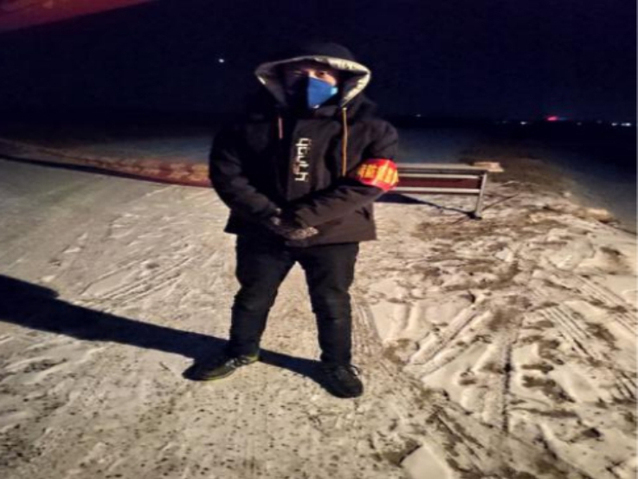 “嗒嗒嗒”这是拖拉机的声音。这时从远处漂来嘹亮的声音:“大家都在家里尽量不要出来玩啊。”突然有大娘来了一句:“这是谁家小伙子,真勤快,我们都在家呢,放心。”随后又会传来张元盛同学爽朗而质朴的笑声。虽然寒风凛冽,但是他依旧坚持着,辛苦但充实。外面飘着洁白的雪花,路过的奶奶问他冷不冷,他笑着说“不冷,即使外面是冷的,但我的心是暖的”。“外面这么冷,还在外面值守,好孩子,爷爷奶奶为你感到骄傲自豪”。他很开心的笑了,因为有种被人认可的自豪。哪怕戴着口罩看不清但是他的喜悦之情谁都能够感受到。