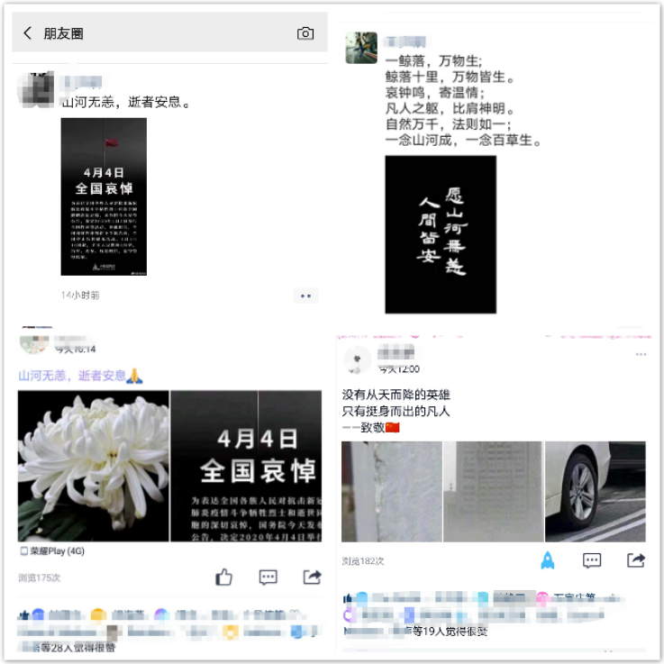 本网讯 恰逢清明,为悼念抗疫英烈和逝世同胞,勉励当代青年向英雄学习“舍小家为大家”的精神、勇于承担和践行社会责任,材化学院在引导安全文明祭扫的同时鼓励学子们用自己的方式表达对他们的哀思,他们有的在QQ空间为他们刷屏悼念,有的在朋友圈寄出自己哀思、有的采取“云祭扫”的方式、还有的则通过朗诵的方式进行。英雄——我们不会忘记,人民不会忘记!
