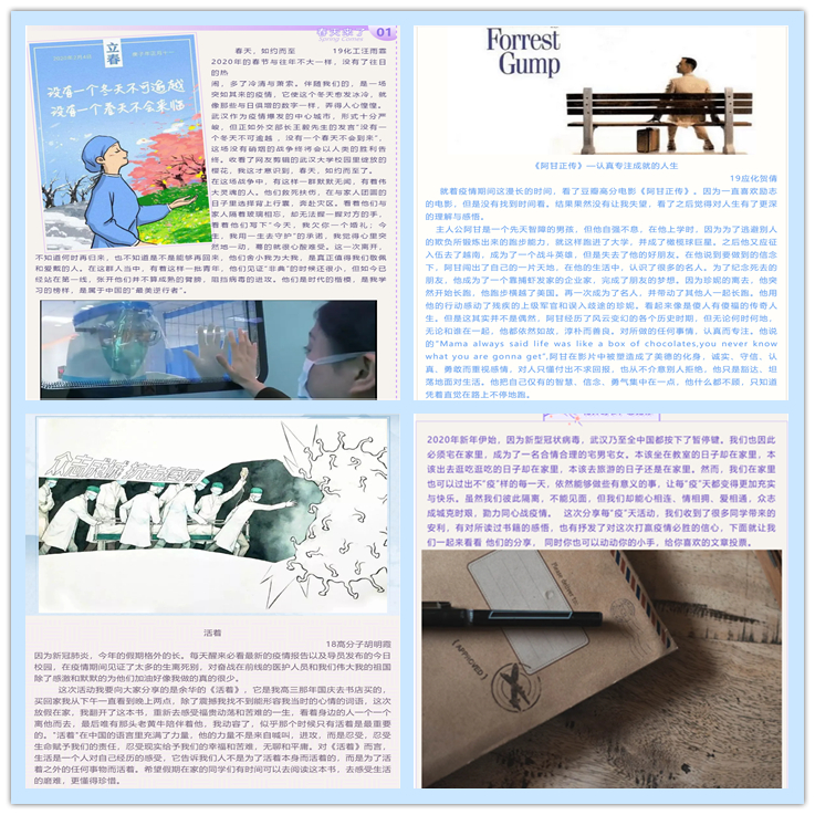 此次活动以分享疫情中的生活为主题,活动形式新颖,同学们积极踊跃参与。征文内容贴合生活实际,投稿者或朴实真诚地阐述书中故事,或客观真实地剖析疫情问题,或热情真切地提出对祖国的祝愿与感恩。同学们结合自己的自身经历,讲述着自己的每“疫”天,一字一句无不表现了对生活、对祖国的热爱,展示了满满的青春正能量。经过一周多的评选,最终共有十篇文章入选最佳作品。