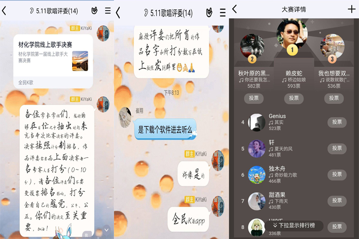 “只要你敢唱天籁之声就是你”,此次活动以减轻学生学习压力,勇敢展现自我为目标。活动分为预选赛和决赛两部分。预选赛中,选手可独唱或组队合唱,选择前八名晋级决赛。决赛部分,由评委为各个作品打分,依据得分高低排名。
