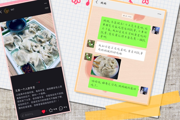 本网讯 12月21日是中国的传统节日—冬至,为弘扬传统文化,促进学生对传统节日的认识与了解,冬至日,材化学院鼓励学生做好自我防护的同时,走出宿舍,感受节日气氛,体验传统民俗。