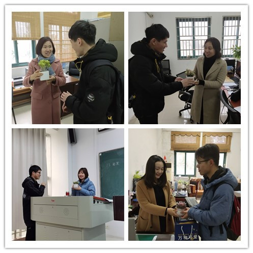 节日当天,学院分工会组织学生一早就将种类丰富、造型精美的小盆栽送到了教室、办公室,并为辛勤工作的女教师们送上了暖心的节日祝福。收到精巧别致的小盆栽,繁忙的工作之余可以欣赏绿植放松心情,女教师们都开心不已,切身感受到了学院对女教职员工们的关心和关爱。大家纷纷表示,要继续在生活和工作中发挥“半边天”的作用,爱岗敬业,创造新的业绩!(作者:李碧虹;审稿:万德军)